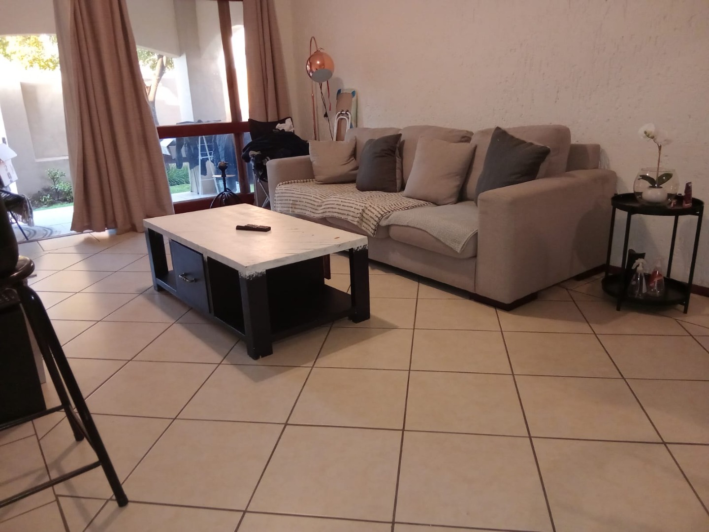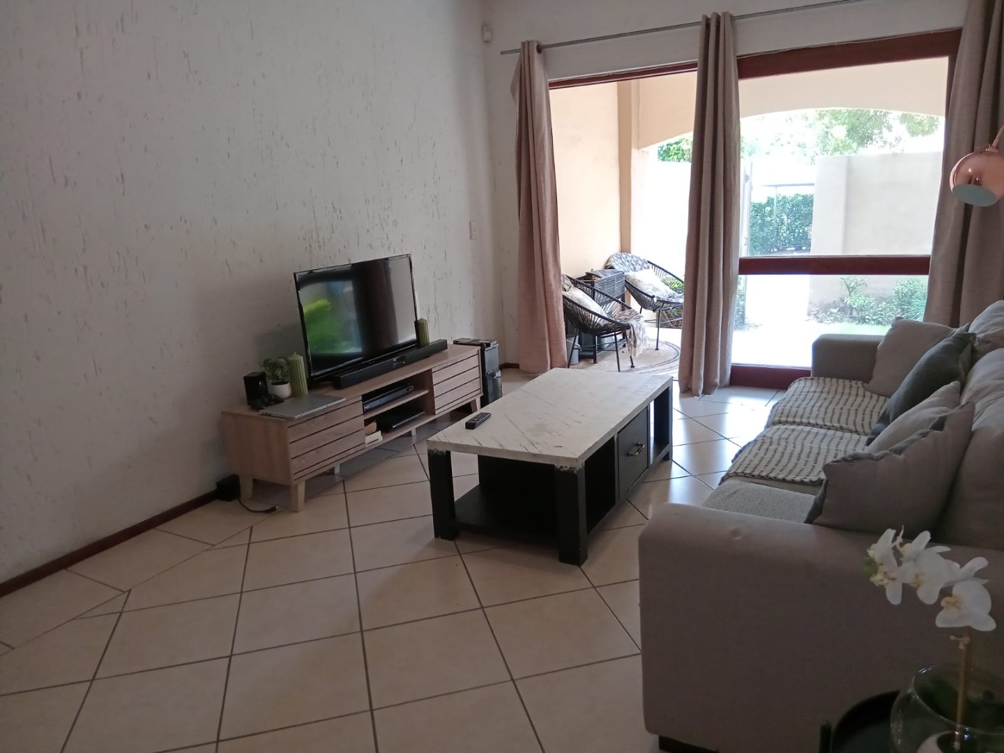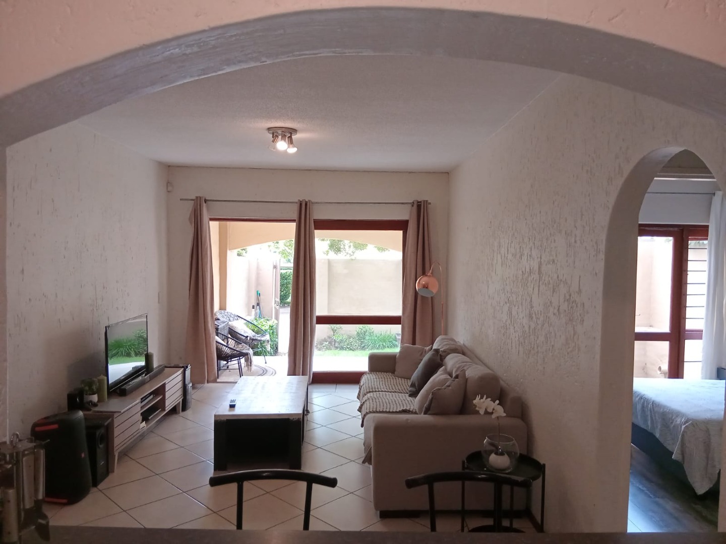 This inviting 57 sqm apartment offers comfortable and secure living in the sought-after suburb of Lonehill, Sandton. The well-appointed interior features a single bedroom and a full bathroom, complemented by a spacious lounge area that benefits from abundant natural light through large glass sliding doors. Tiled flooring extends throughout the living spaces, ensuring easy maintenance. The modern kitchen is equipped with light wood cabinetry, an integrated oven and hob, and a space for a washing machine, providing a functional and stylish space for daily living. Direct access from the lounge leads to a private patio and garden area, perfect for relaxation and outdoor entertaining.