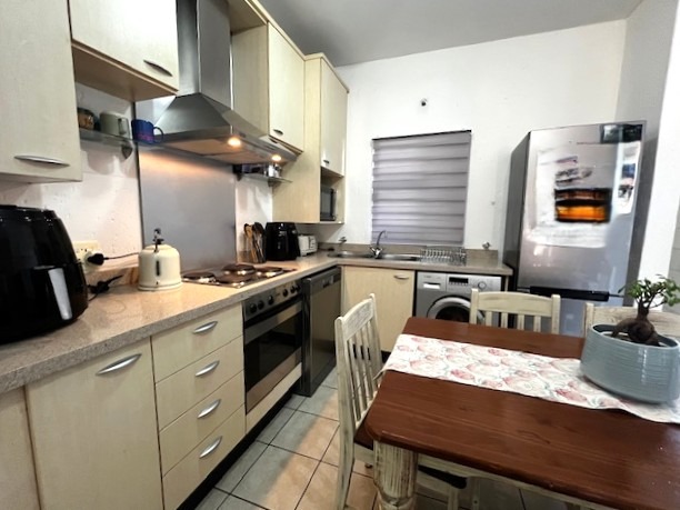 Discover modern living in this inviting 1-bedroom, 1-bathroom apartment located within a secure complex in Lonehill, available 1 February. Spanning 59 square metres, this residence offers a well-designed open-plan layout that seamlessly connects the living, dining, and kitchen areas, enhanced by abundant natural light from large windows. The kitchen includes an oven, hod and extractor, space for two water appliances and a single fridge, CeasarStone tops and double basin. Tiled flooring extends throughout the main living spaces, ensuring easy maintenance.