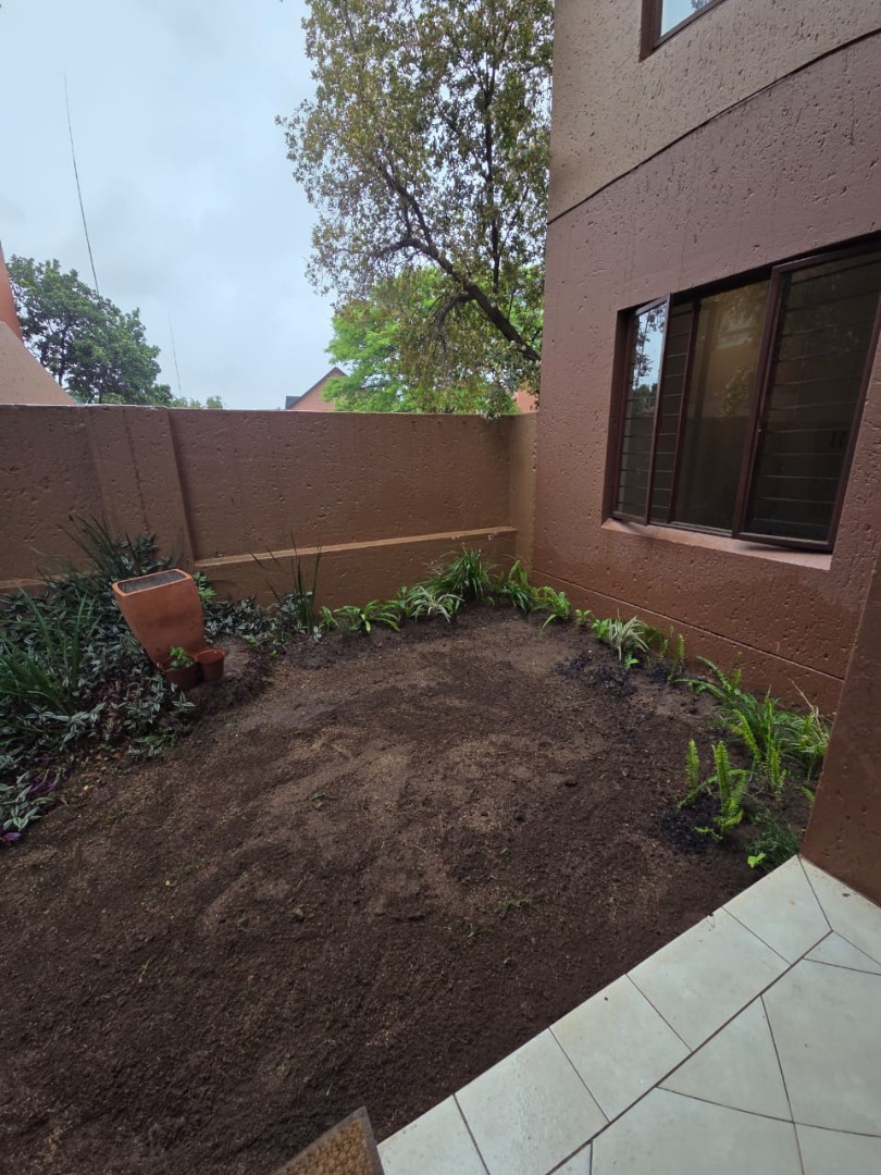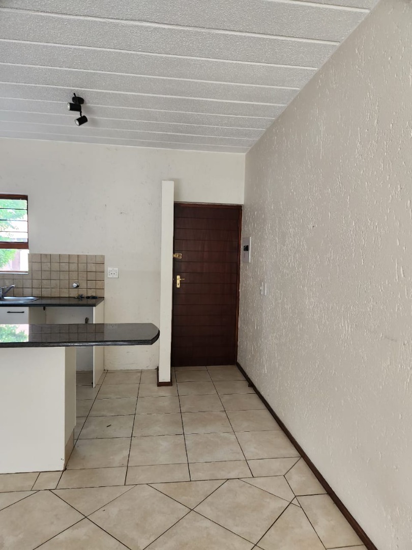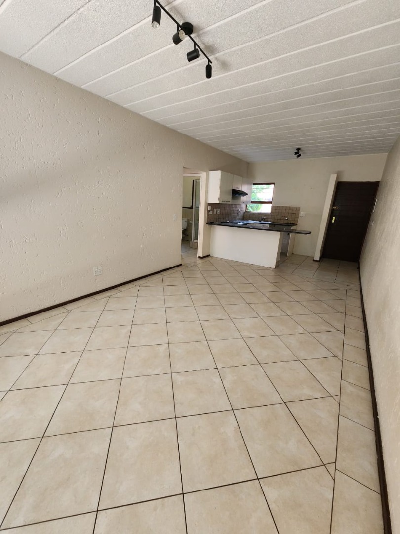 Discover modern living in this inviting 1-bedroom, 1-bathroom apartment located within a secure complex in Magaliessig, Sandton. Spanning 56 square meters, this unit offers a well-designed open-concept layout that seamlessly connects the living area with a contemporary kitchen. The kitchen features sleek white cabinets, granite countertops, and a practical island, perfect for both meal preparation and casual dining. Large sliding glass doors flood the space with natural light and provide direct access to a private outdoor garden area, offering a tranquil retreat for relaxation or personal landscaping. The apartment includes one dedicated parking bay.