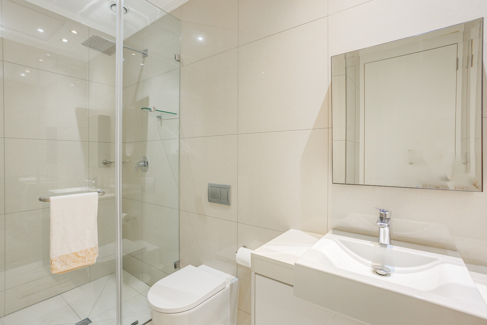 Both bedrooms are en-suite, of course. The master? A sanctuary floating in the sky with floor-to-ceiling windows, crisp linens, and a bathroom that feels like a private spa. The second bedroom? Equally spoiled, perfect for visiting executives or that “just one more meeting” colleague who always overstays – but at least they’ll do it in style.