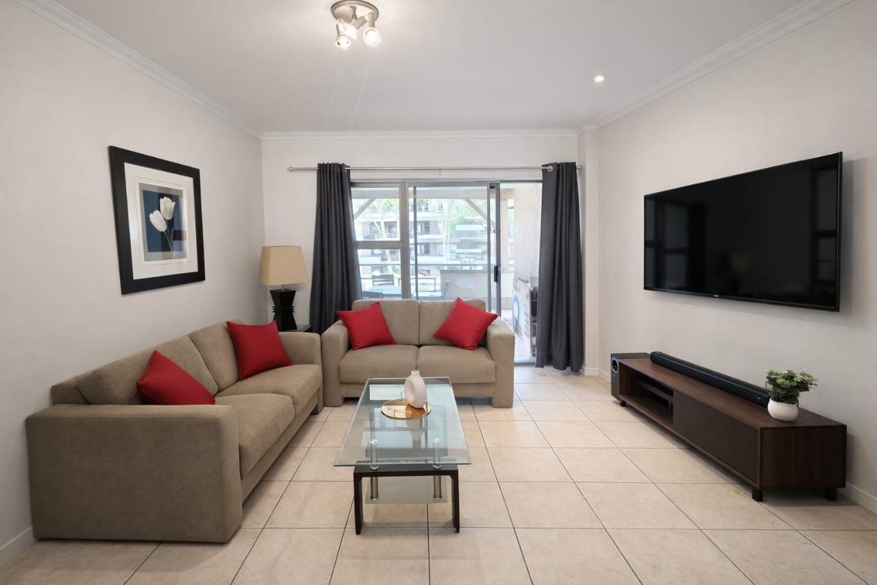 A fully furnished, 2 bedroom, 2 bathroom masterpiece in the heart of Sandton’s corporate playground. Both bedrooms come with ensuite bathrooms because… why share anything except champagne?