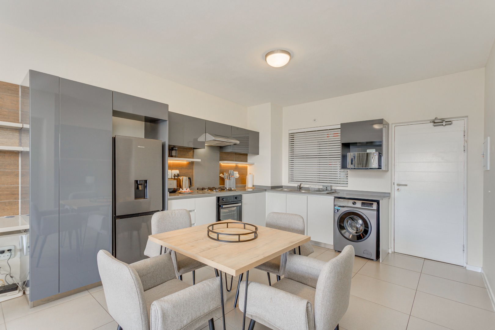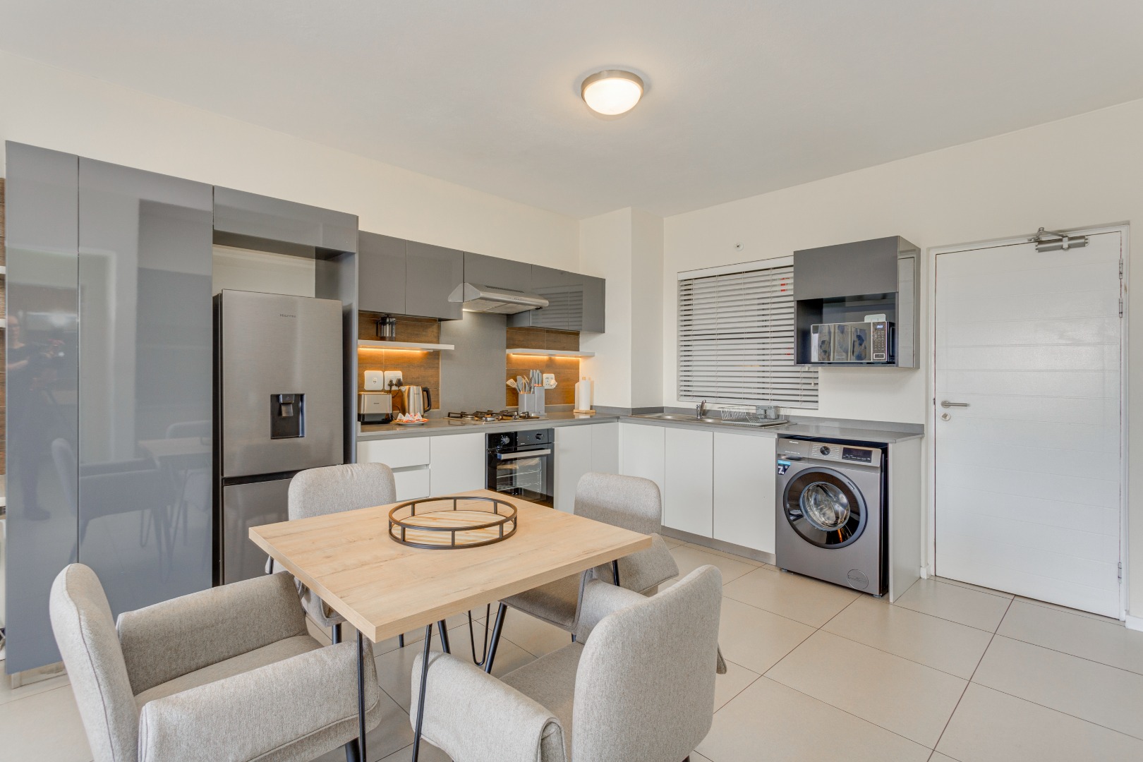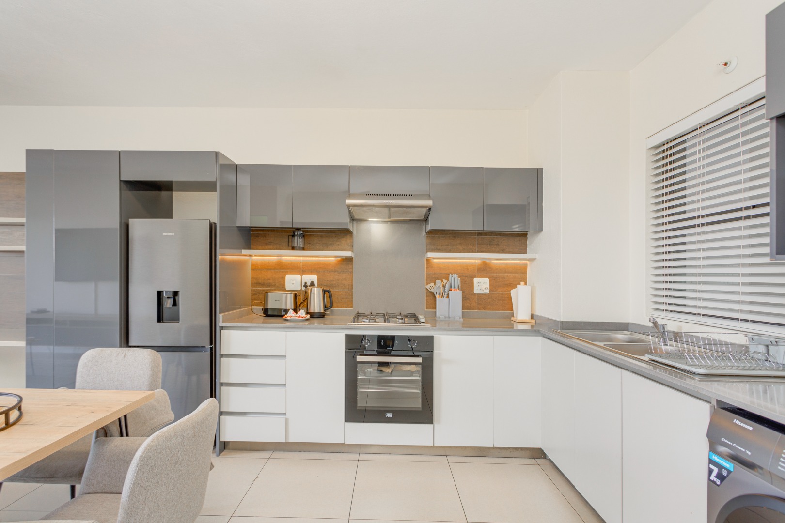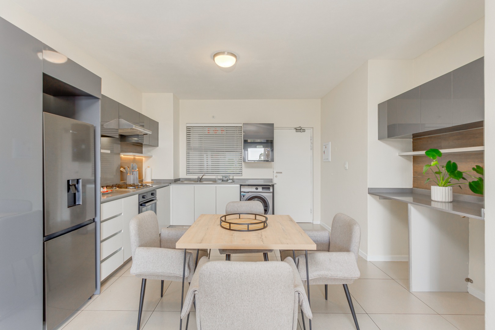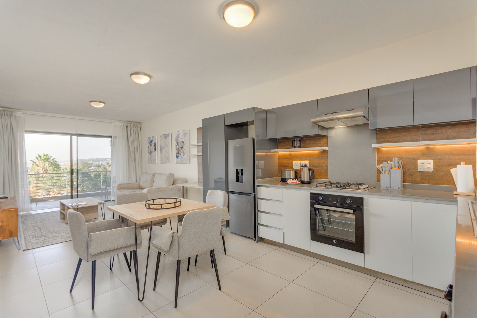 Hey there! Looking for a super comfy and modern spot in Sandton? This lovely 2-bedroom, 2-bathroom apartment in Morningside offers a fantastic 86 sqm of living space. It comes fully furnished, so you can just move right in. The open-plan living, dining, and kitchen area is designed for easy, modern living. The kitchen is a real highlight with sleek grey and white cabinetry and integrated appliances like a fridge, oven, gas hob, extractor, and washing machine. Sliding doors open up to a private balcony, perfect for a morning coffee or evening chill overlooking the pool.