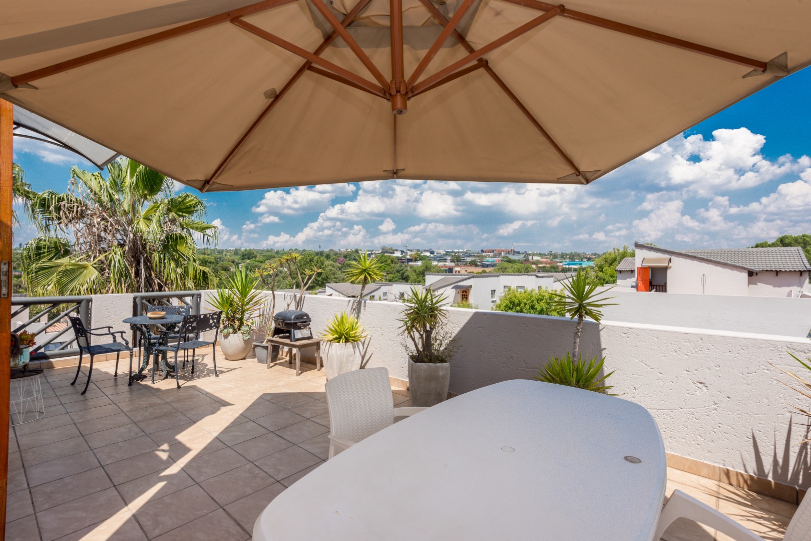 Looking for a comfy and convenient place to call home in Morningside, Sandton? This lovely 2-bedroom, 2-bathroom apartment in Morningside is just the ticket! It comes fully furnished, so you can move right in without any fuss. The layout is open-plan, making the living and dining areas feel spacious and welcoming, perfect for relaxing or entertaining. You'll find a well-equipped kitchen ready for your culinary adventures, and sliding doors lead out to a private patio where you can enjoy the fresh air as well as awesome views of greenery and blue skies. Upstairs and Downstairs!.