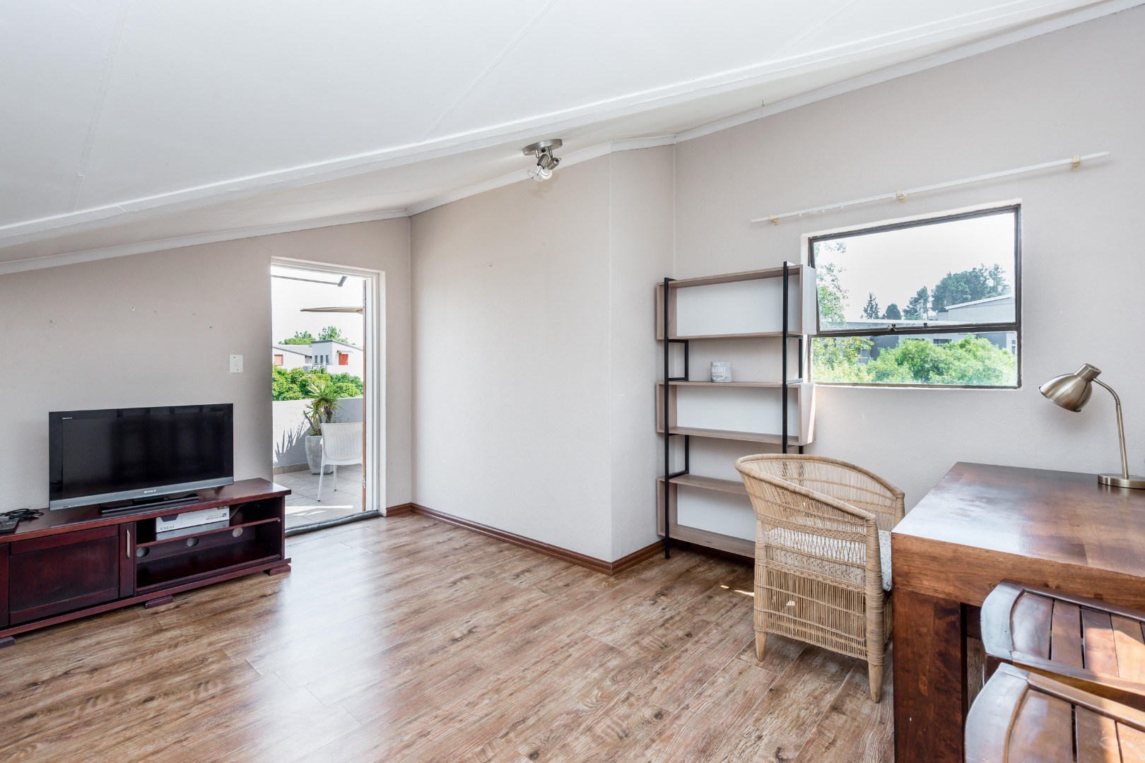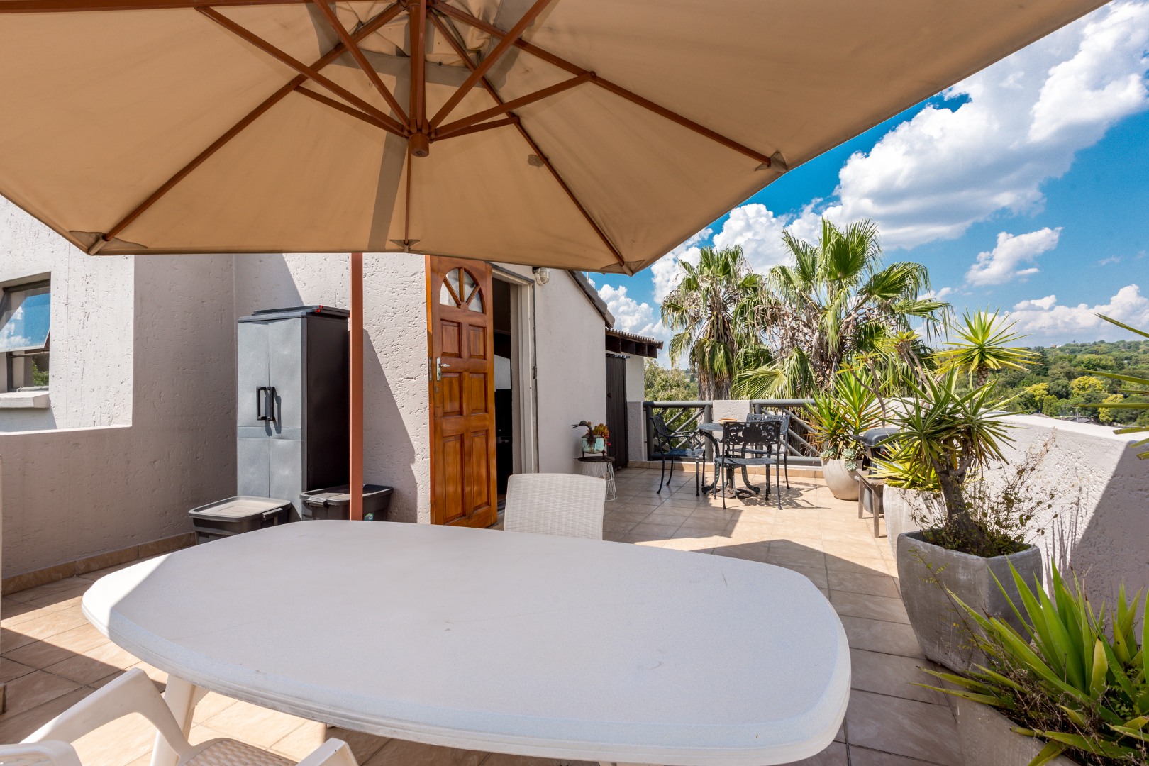 Looking for a comfy and convenient place to call home in Morningside, Sandton? This lovely 2-bedroom, 2-bathroom apartment in Morningside is just the ticket! It comes fully furnished, so you can move right in without any fuss. The layout is open-plan, making the living and dining areas feel spacious and welcoming, perfect for relaxing or entertaining. You'll find a well-equipped kitchen ready for your culinary adventures, and sliding doors lead out to a private patio where you can enjoy the fresh air as well as awesome views of greenery and blue skies. Upstairs and Downstairs!.