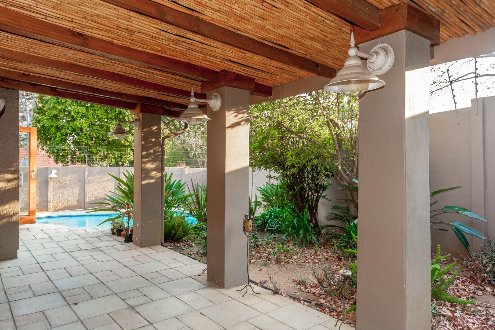 This lovely 4-bedroom, 2.5-bathroom home in Parkmore, Sandton, is ready for you to move in! Step inside and you'll find a spacious layout with a welcoming lounge, a dedicated dining room, and a well-equipped kitchen, perfect for everyday living and entertaining. The living areas boast beautiful hardwood floors and impressive vaulted ceilings with exposed beams, giving the space a really open and airy feel. Large glass doors let in tons of natural light and offer easy access to the outdoors, plus there's a cozy fireplace for those cooler evenings. You'll also appreciate the built-in cupboards in the bedrooms, offering practical storage solutions.