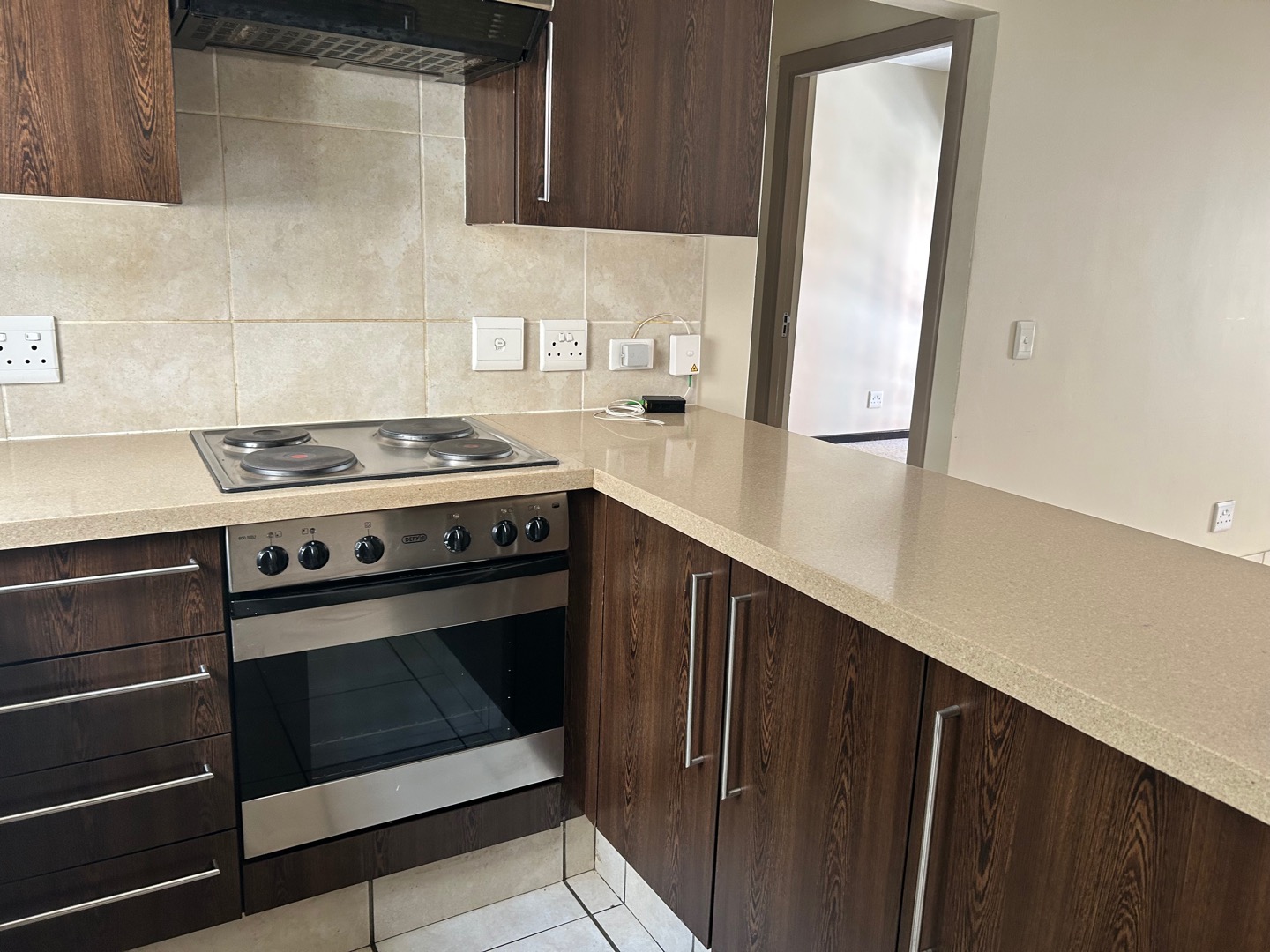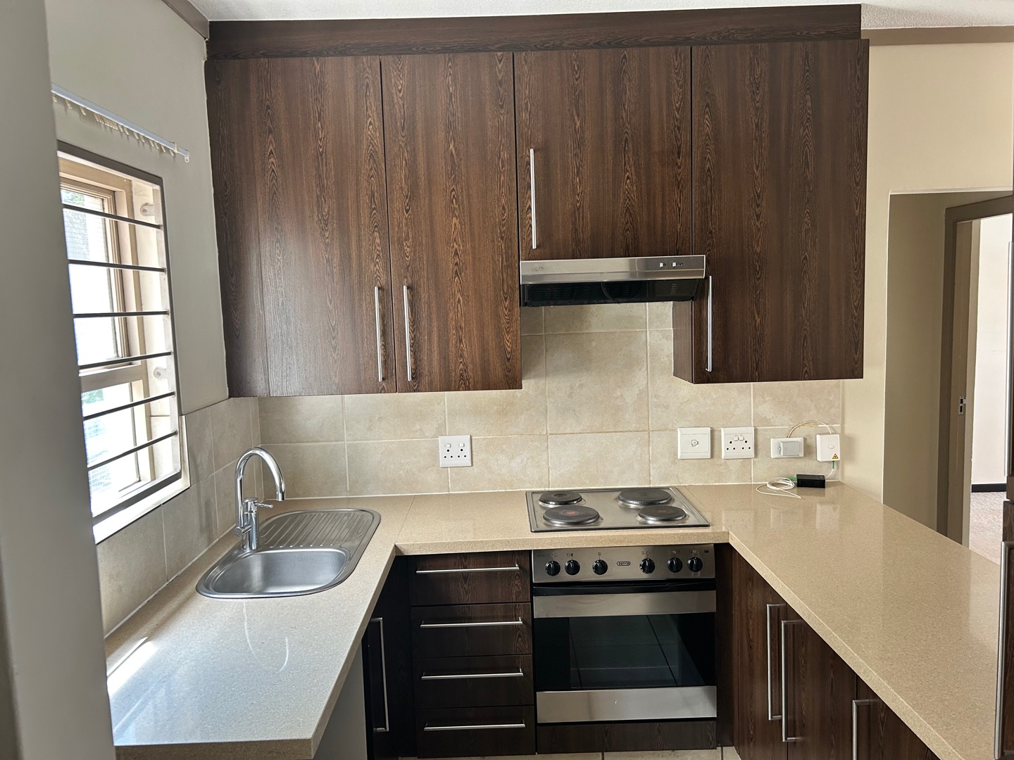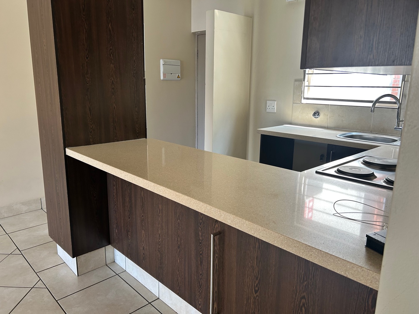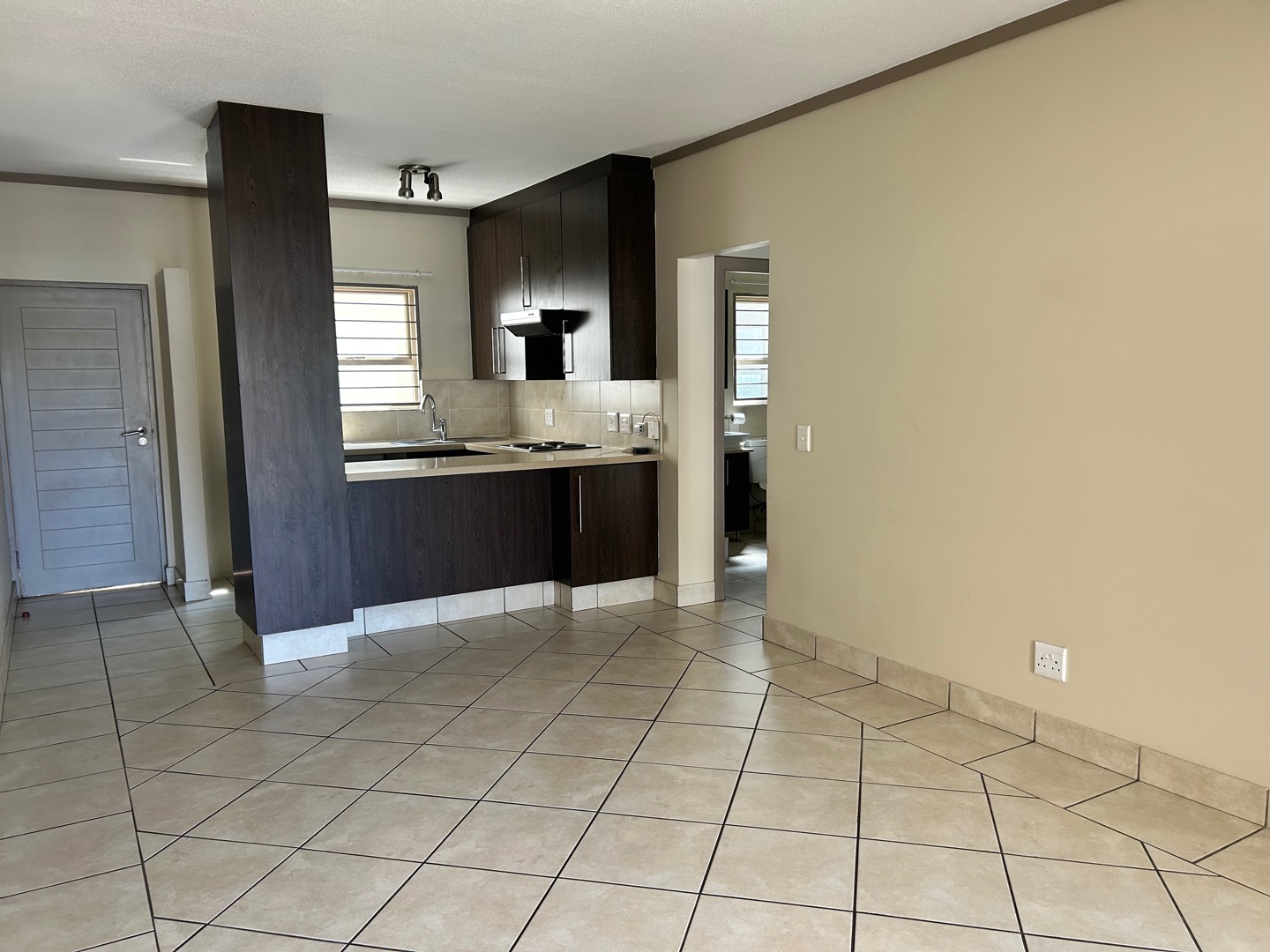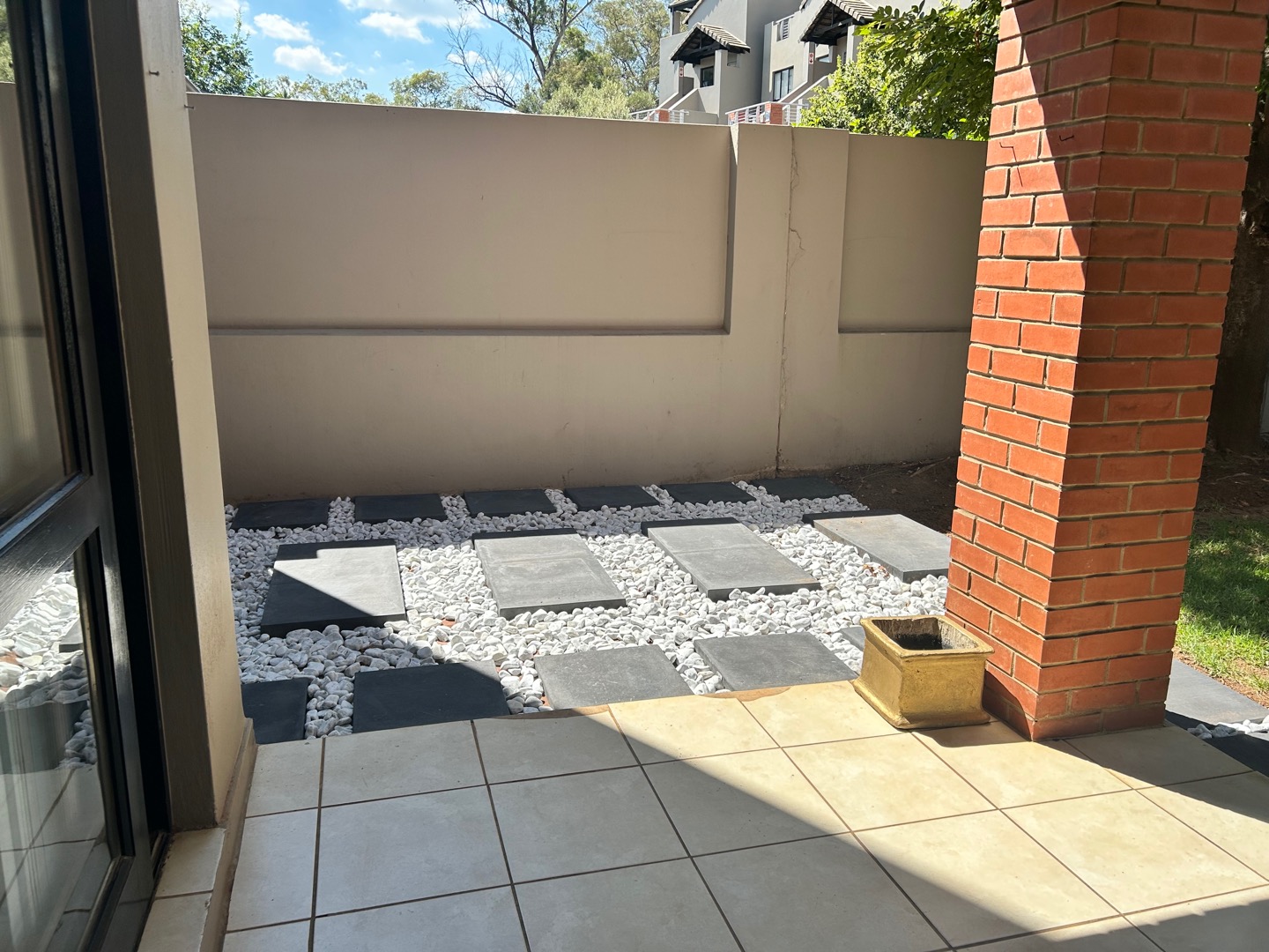 Elegant, light-filled 1-bedroom, 1-bathroom garden apartment with open-plan living and granite-top kitchen. Sliding doors open onto a private garden from both the lounge and bedroom. Space for 1 wet appliance in kitchen. Full bathroom. One covered parking. One small pet allowed, subject to approval.