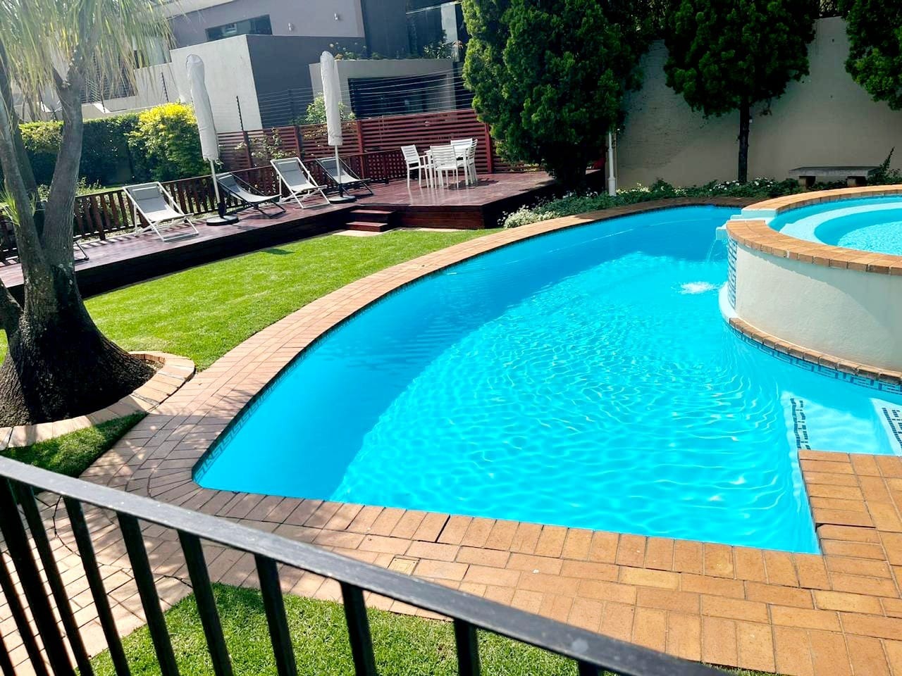 Presenting an exceptional rental opportunity within a prestigious security estate in Sandown, Sandton. This meticulously appointed residence offers 192 square metres of sophisticated living space, featuring three well-proportioned bedrooms and two modern bathrooms. The interior showcases an open-plan design, seamlessly integrating the lounge, dining area, and kitchen, all benefiting from abundant natural light. Direct access to a private outdoor balcony or patio provides a serene retreat with scenic views, ideal for relaxation or alfresco dining. Two dedicated garages and an additional parking bay are included.