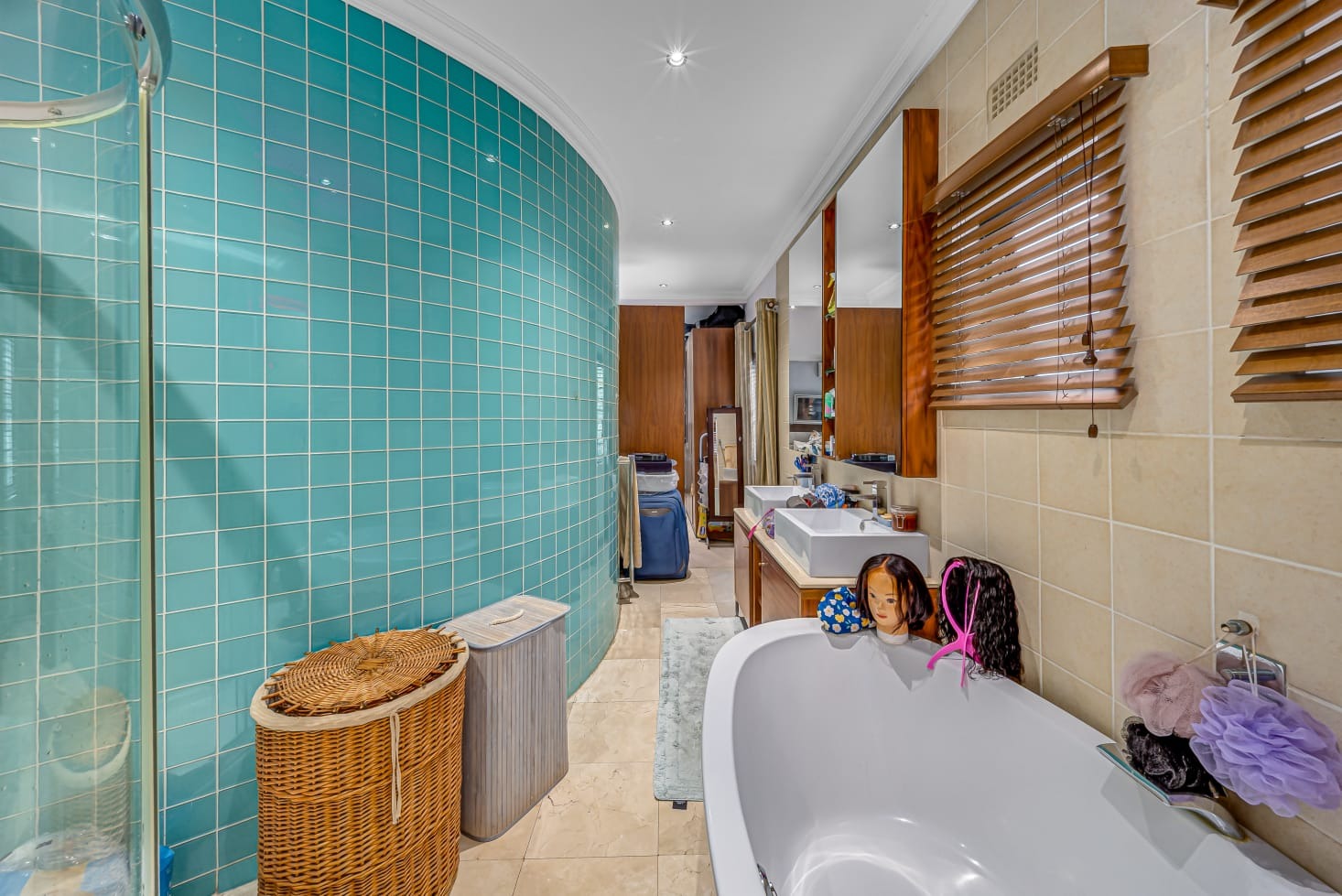 The well-maintained complex offers exceptional lifestyle amenities, including a sparkling communal swimming pool, a laundromat, and beautifully landscaped gardens with a tranquil river running through the property, creating a calm, nature-filled environment rarely found in the city.
