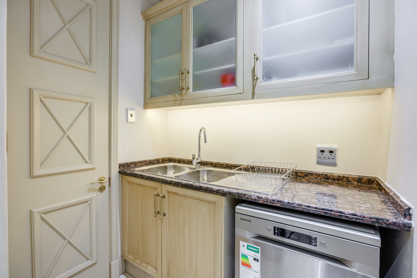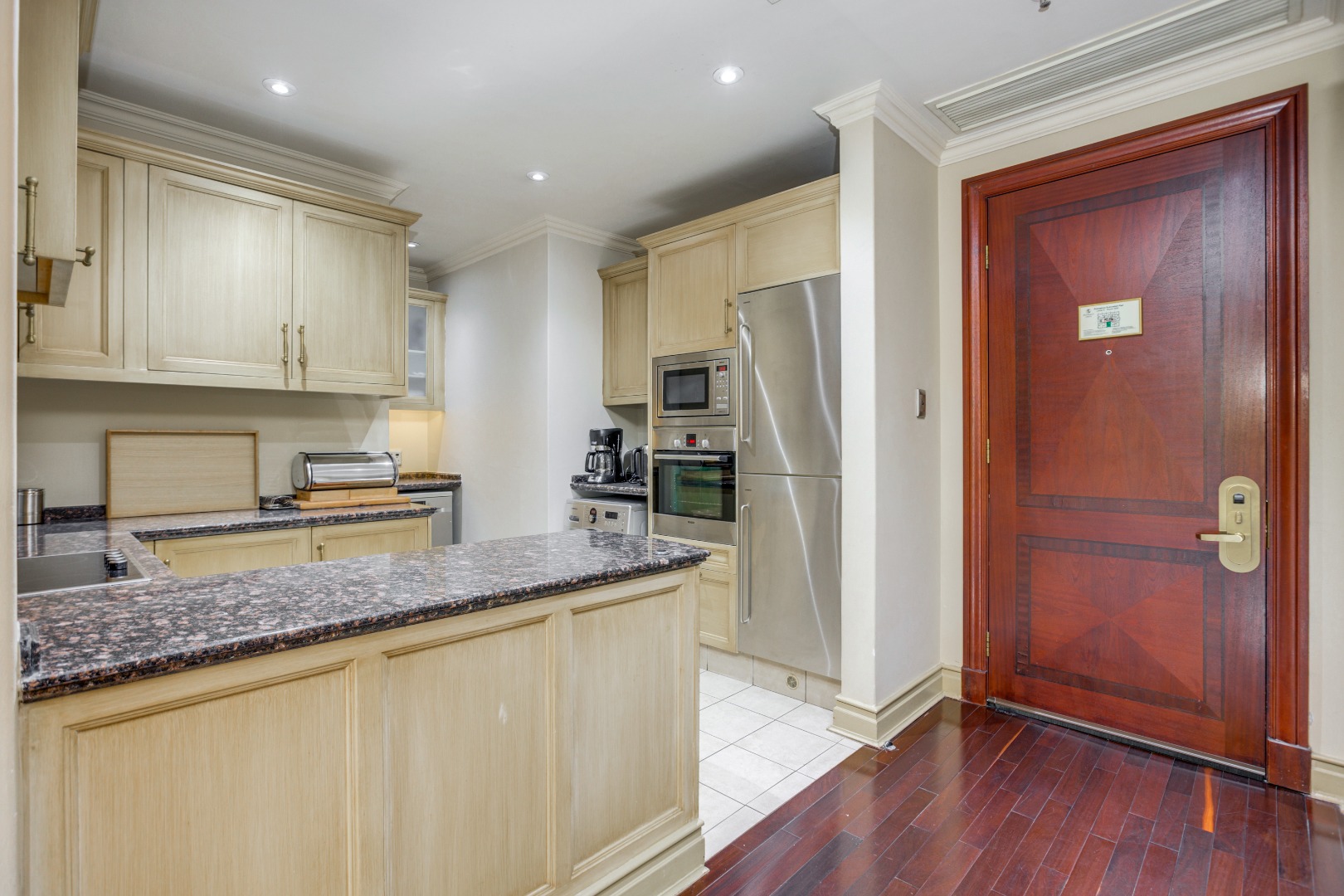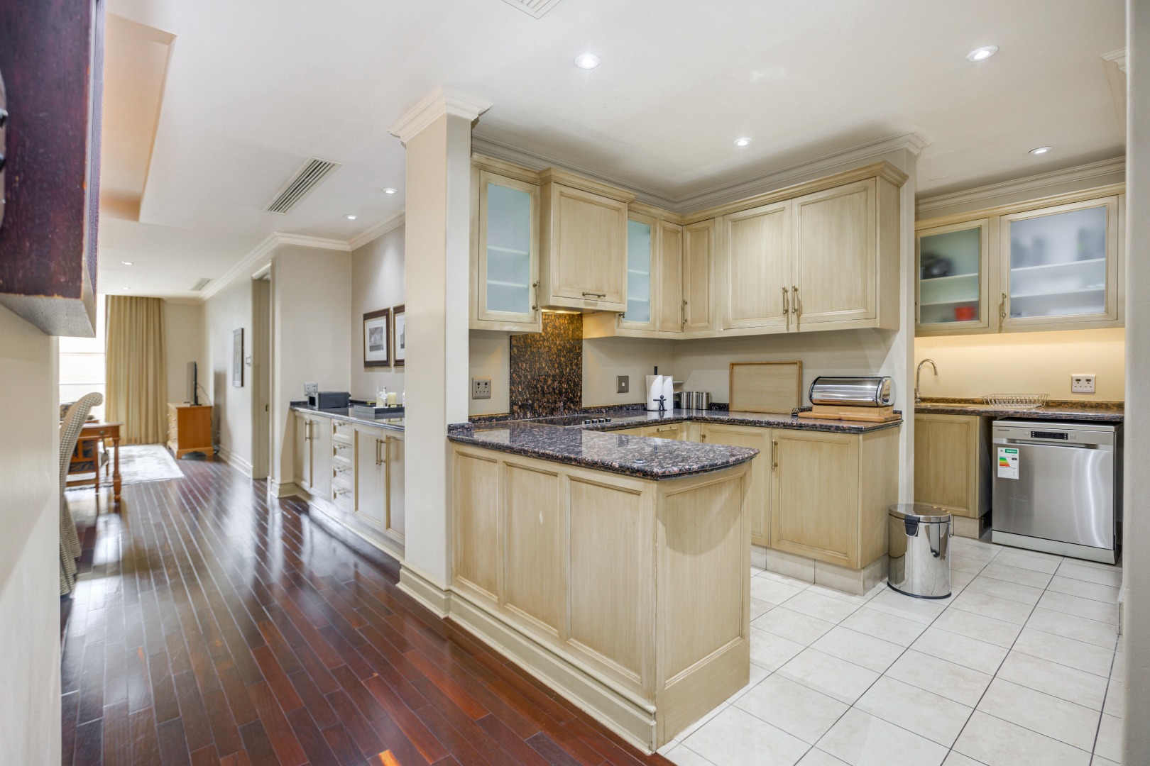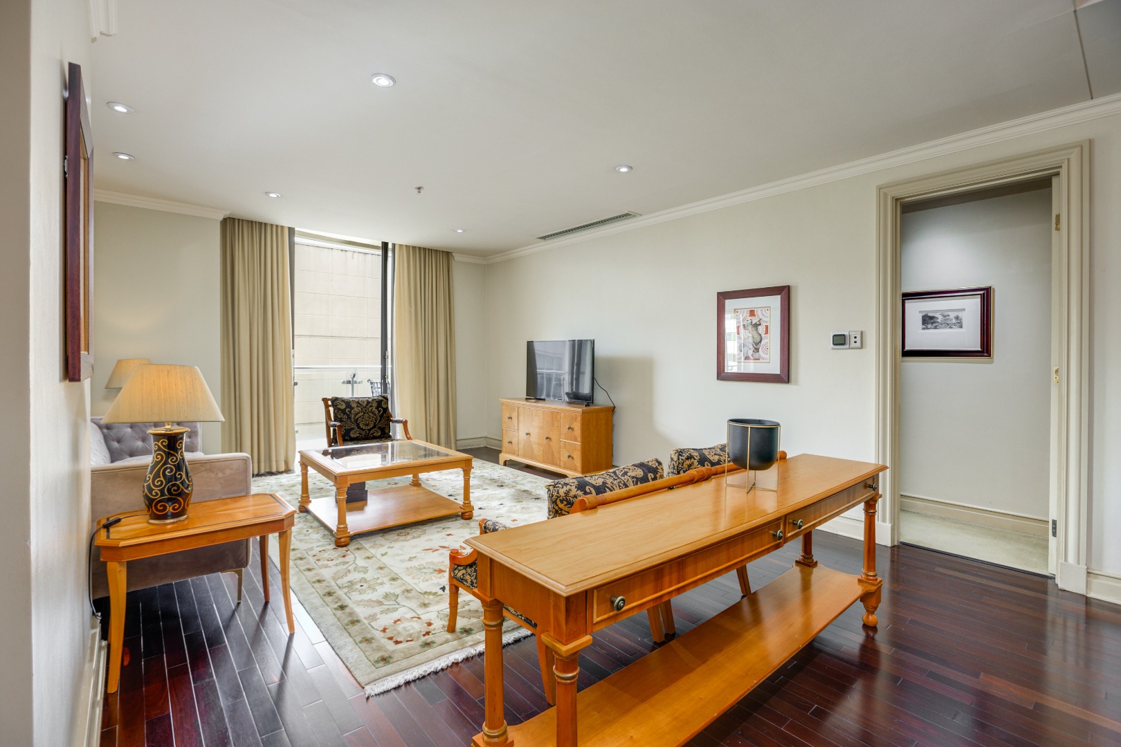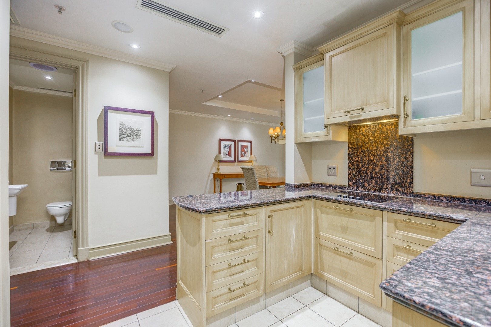 The open plan living area is big enough to host a serious conversation about markets or simply let the skyline speak for itself while you lounge. The kitchen is crisp and modern, fully kitted so you can whip up an espresso or invite your private chef over for dinner. The bedroom? That’s your retreat. Plush bedding, clever storage, and the kind of calm you need after conquering the boardroom.