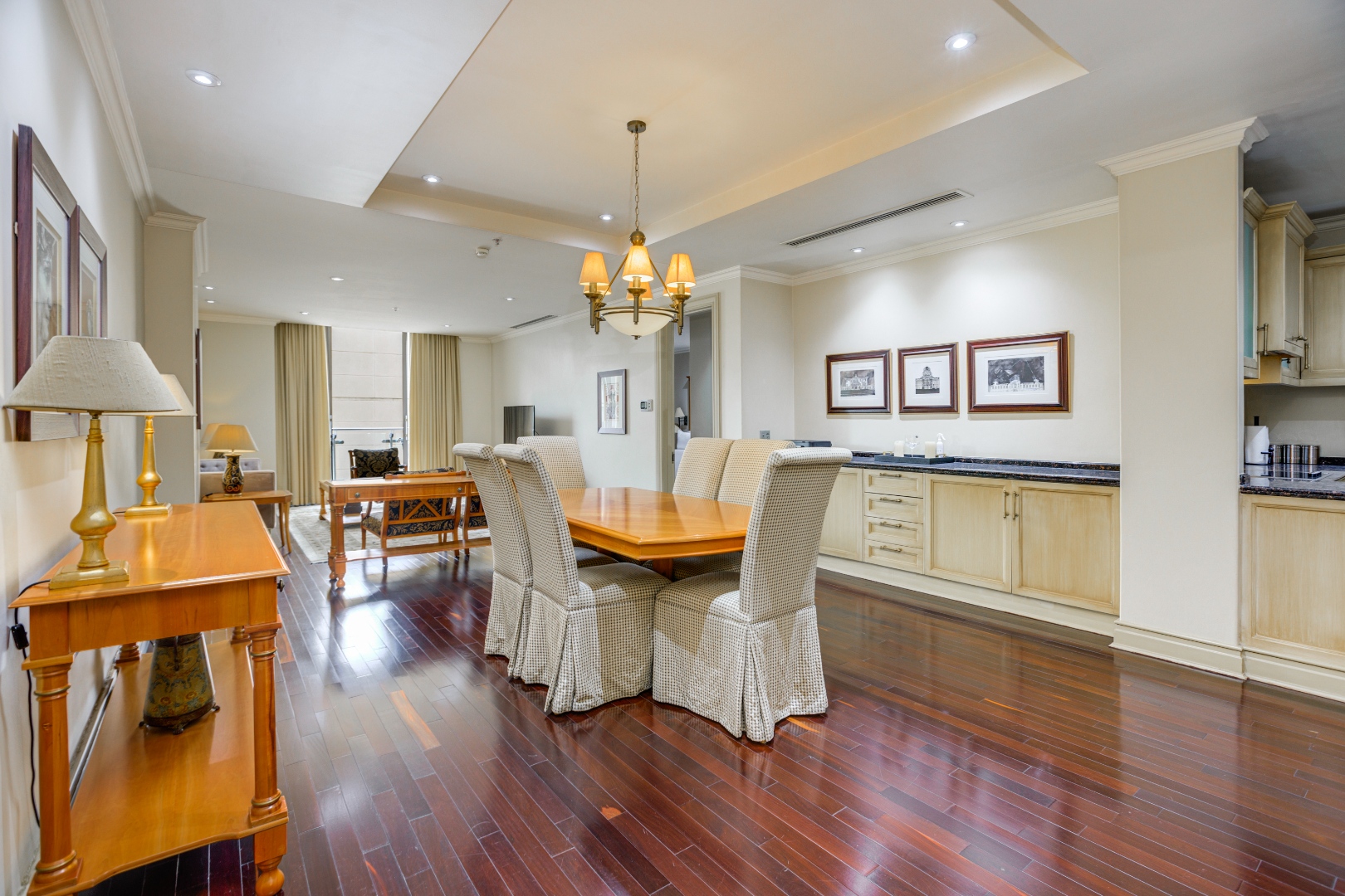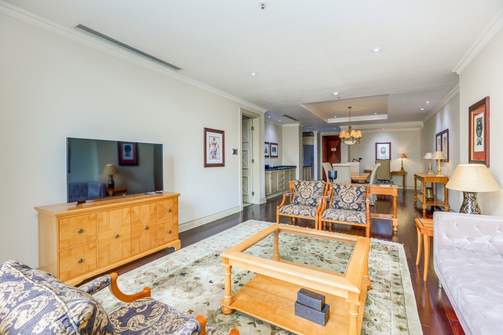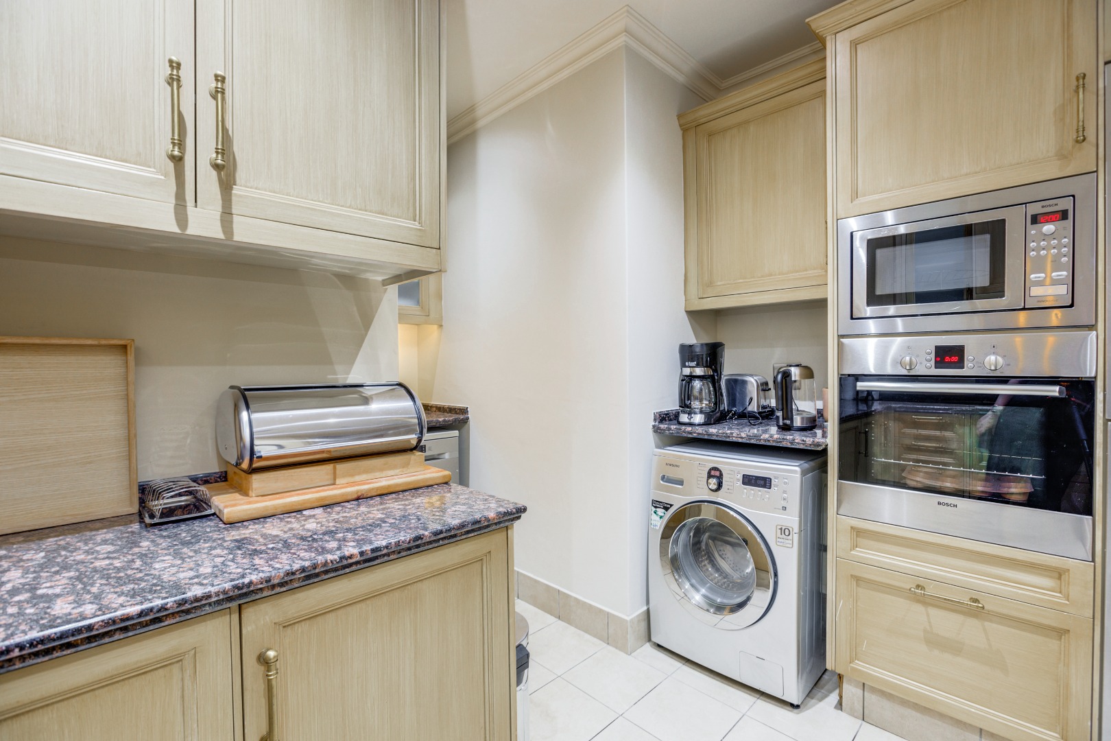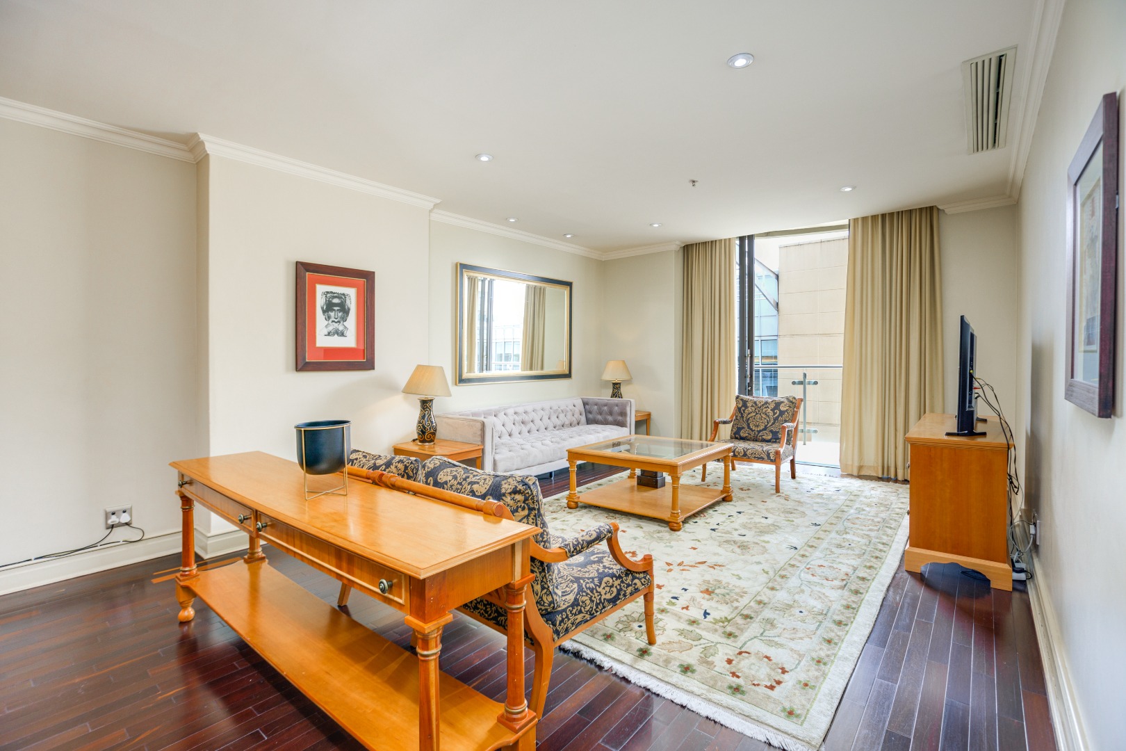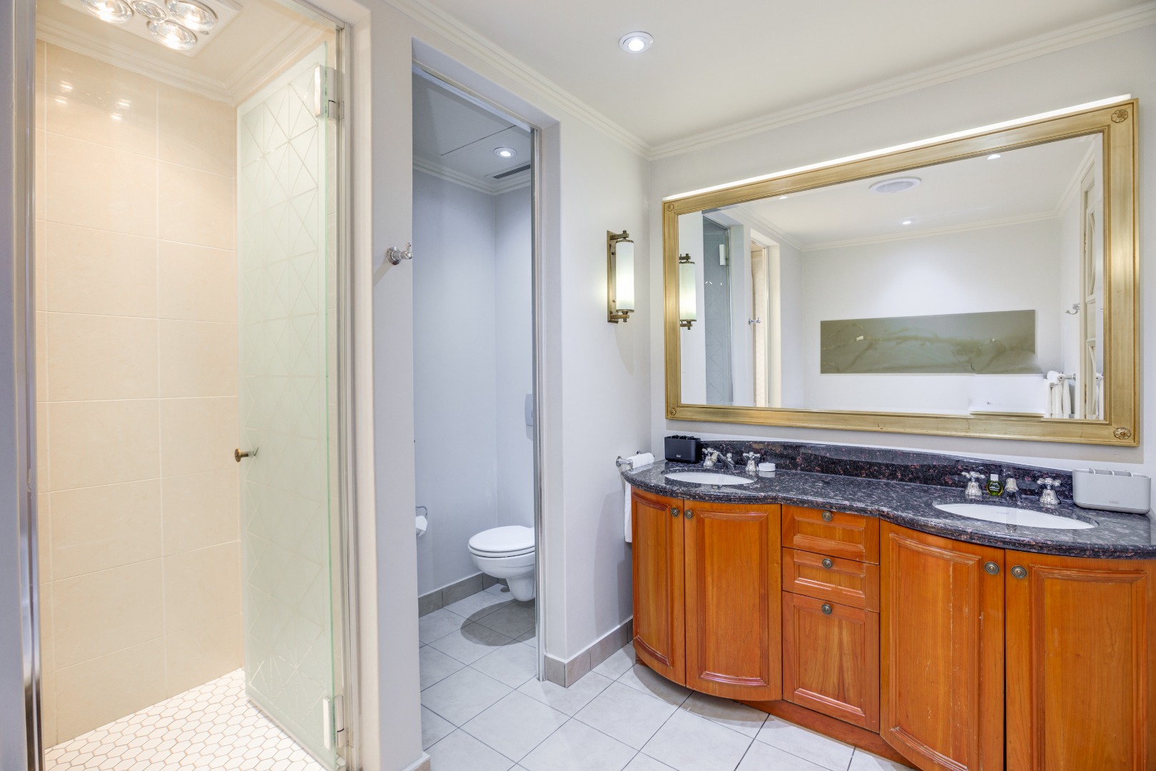 The open plan living area is big enough to host a serious conversation about markets or simply let the skyline speak for itself while you lounge. The kitchen is crisp and modern, fully kitted so you can whip up an espresso or invite your private chef over for dinner. The bedroom? That’s your retreat. Plush bedding, clever storage, and the kind of calm you need after conquering the boardroom.