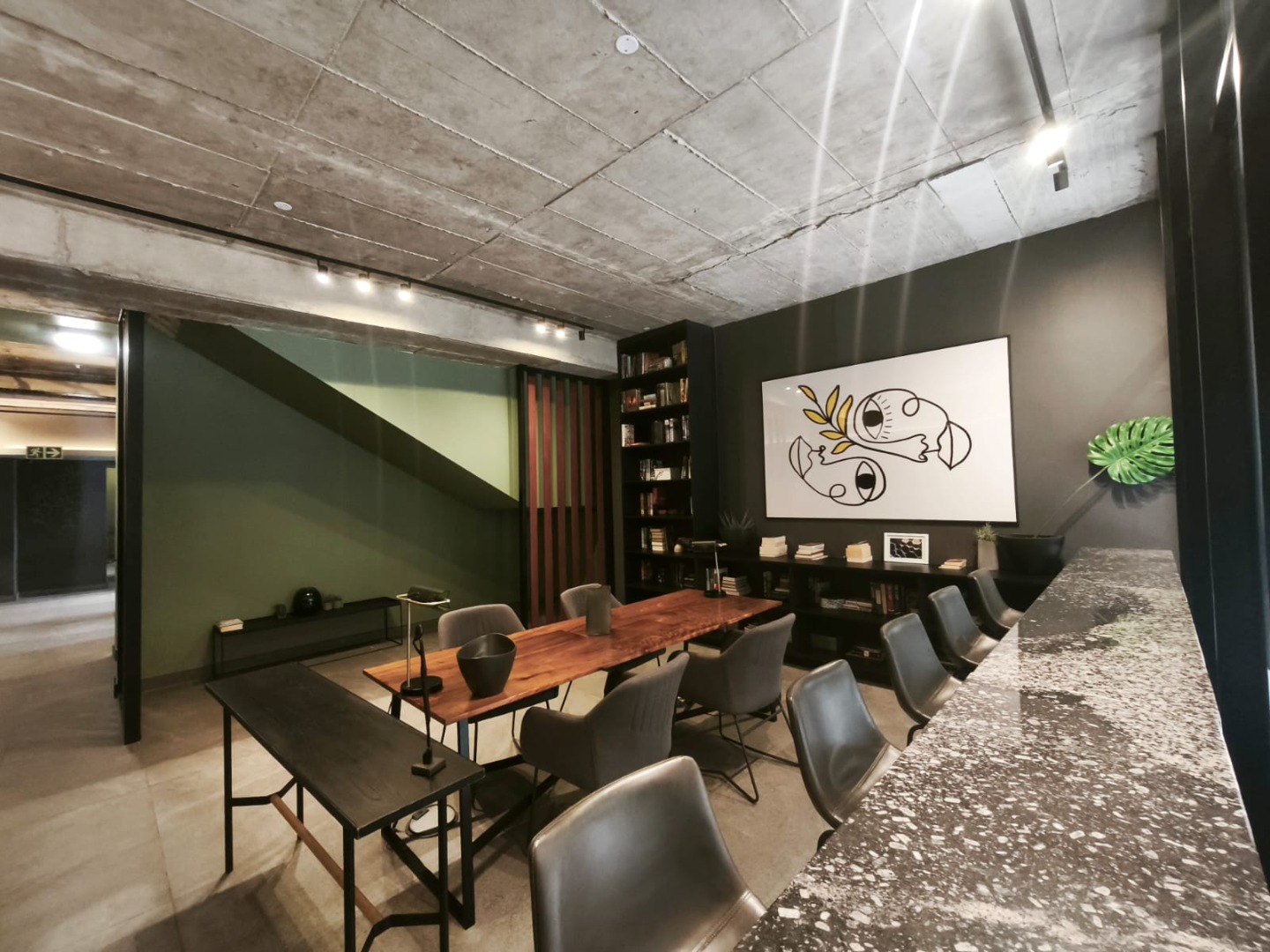 * Exposed Concrete Ceilings & Track Lighting