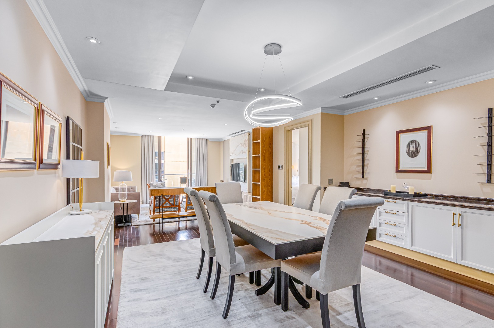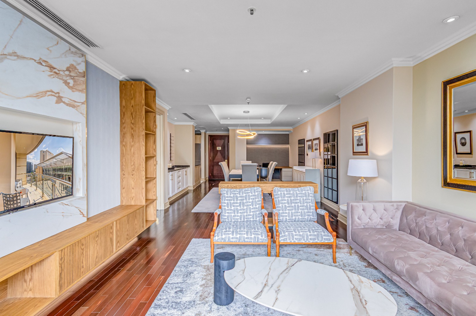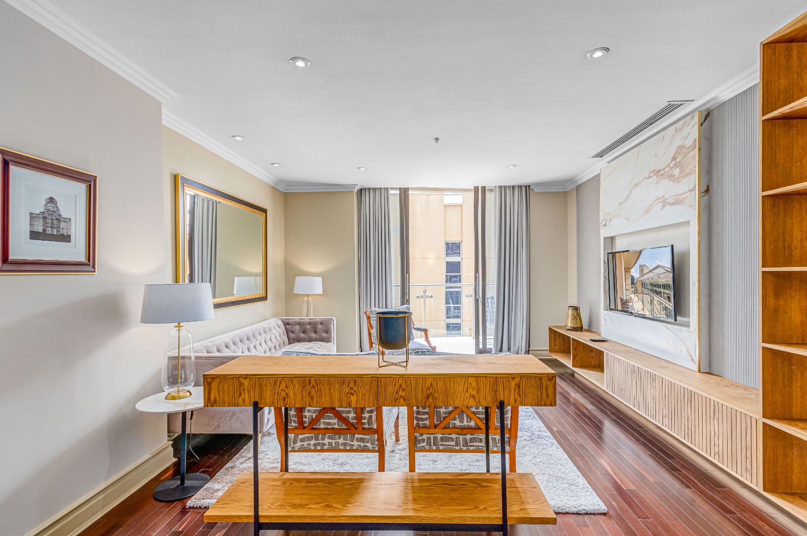 The open-plan living space flows seamlessly, from a designer kitchen that says “I could cook… but I have options” to a lounge that invites both quiet mornings and late-night deals. Every detail is considered. Every piece in place. Fully furnished, fully styled, fully ready.