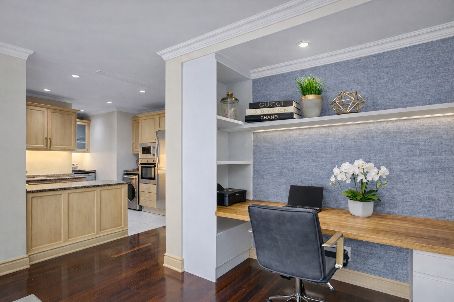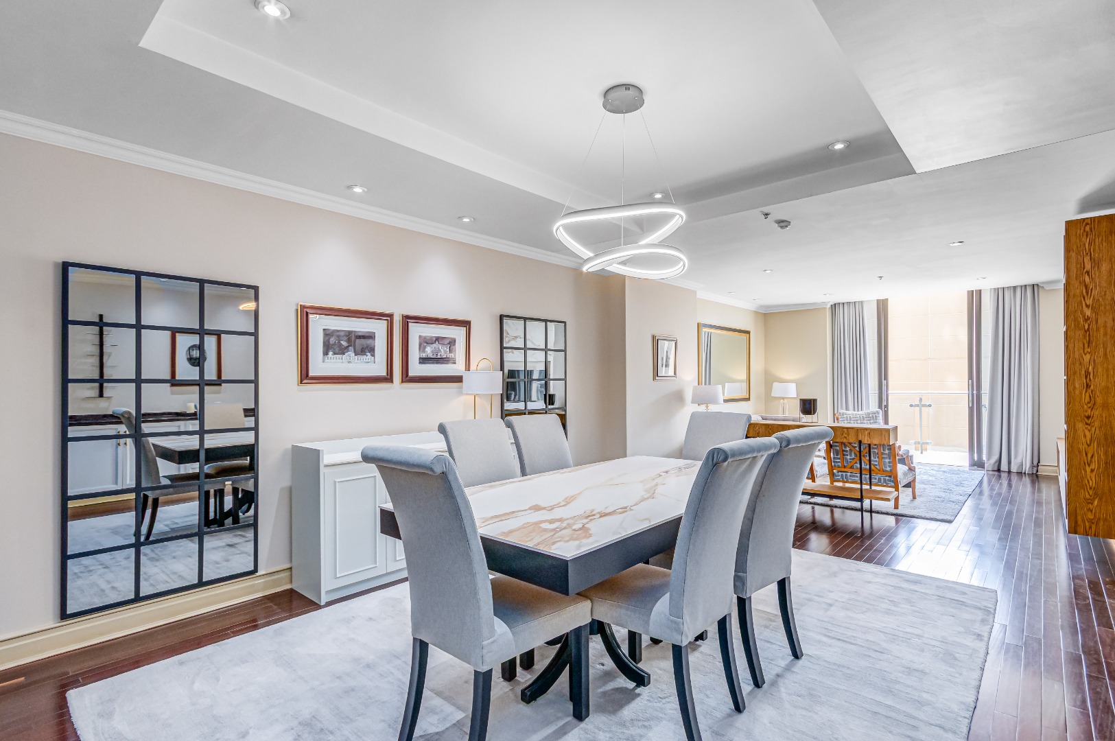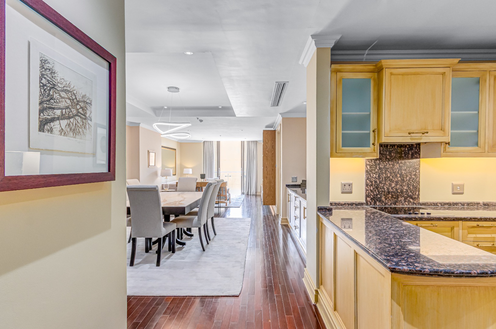 The open-plan living space flows seamlessly, from a designer kitchen that says “I could cook… but I have options” to a lounge that invites both quiet mornings and late-night deals. Every detail is considered. Every piece in place. Fully furnished, fully styled, fully ready.
