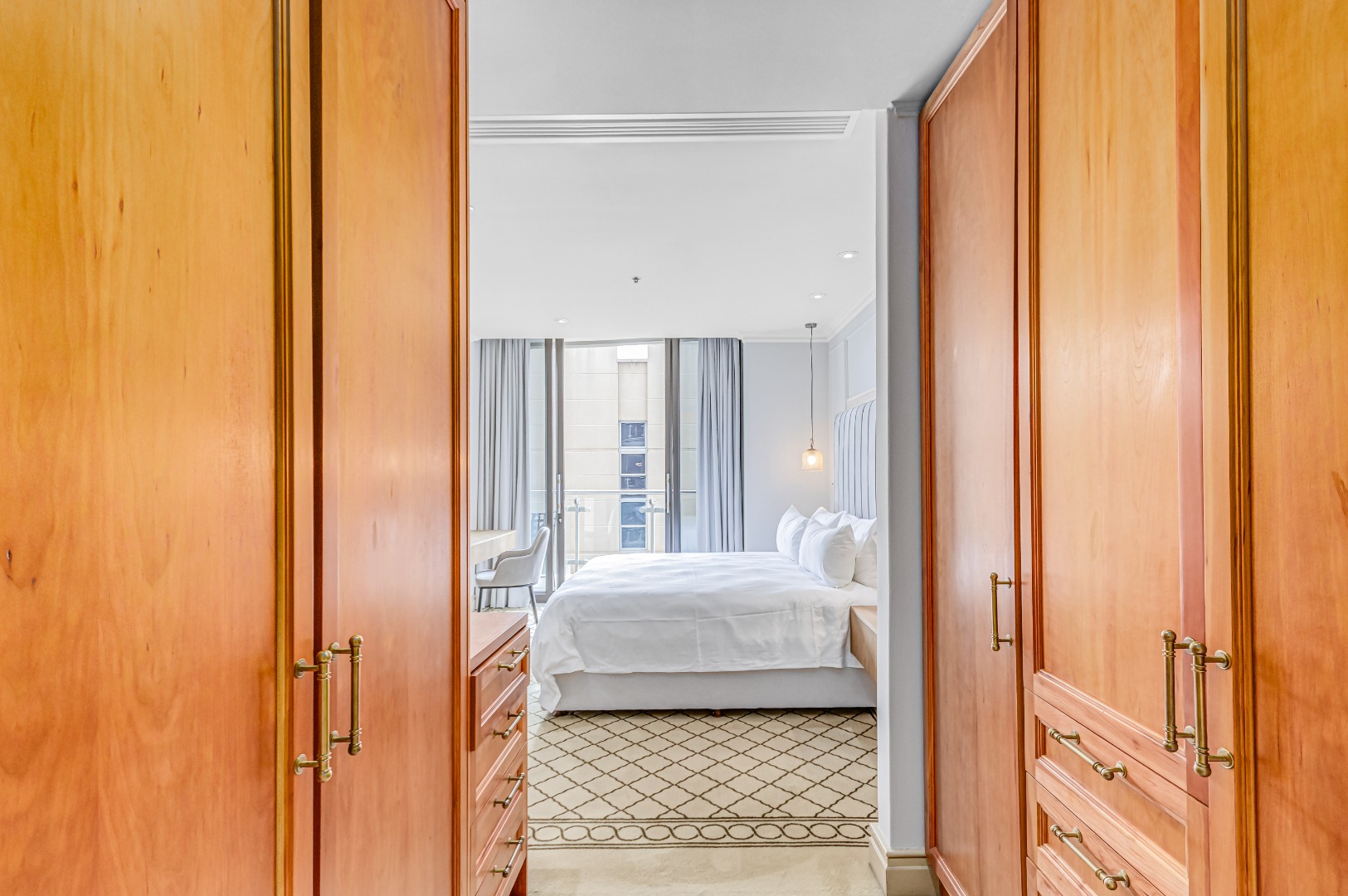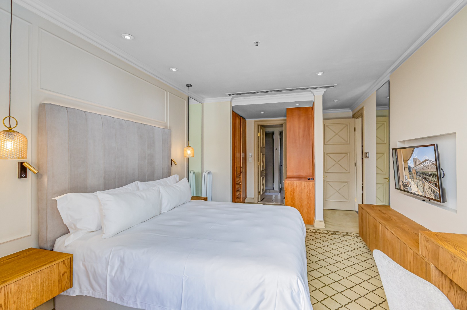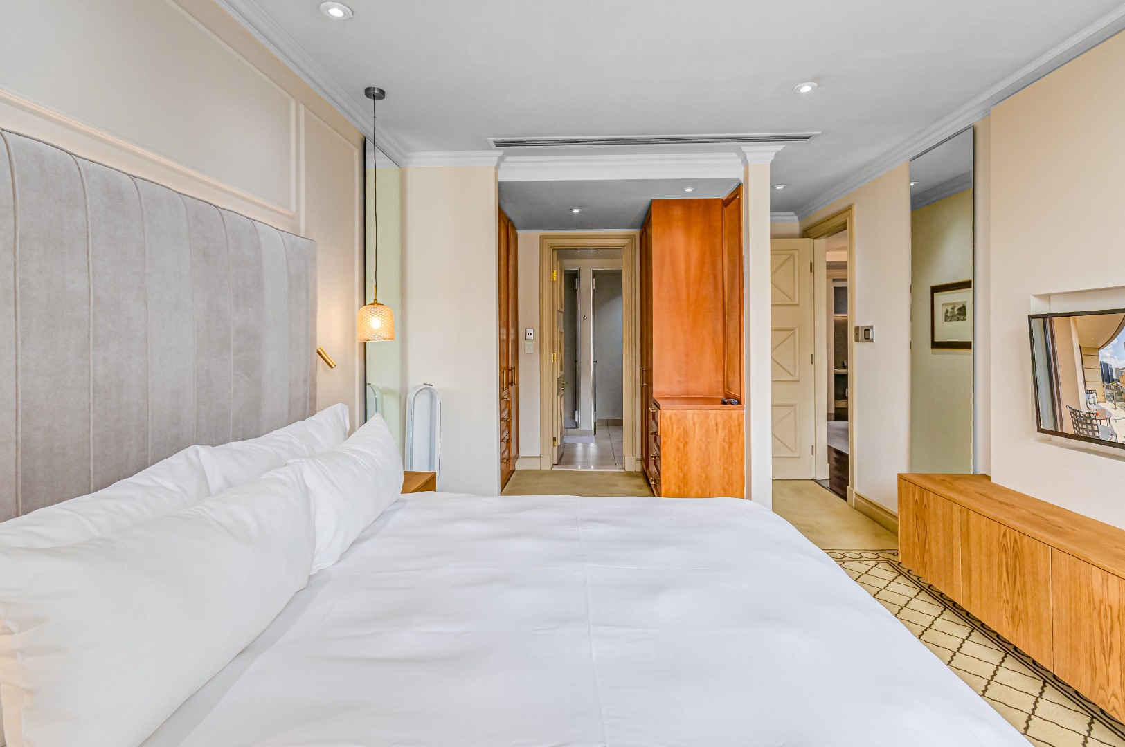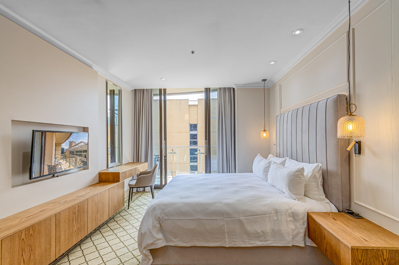 The bedroom is calm, refined, and unapologetically comfortable, your escape above the city.
